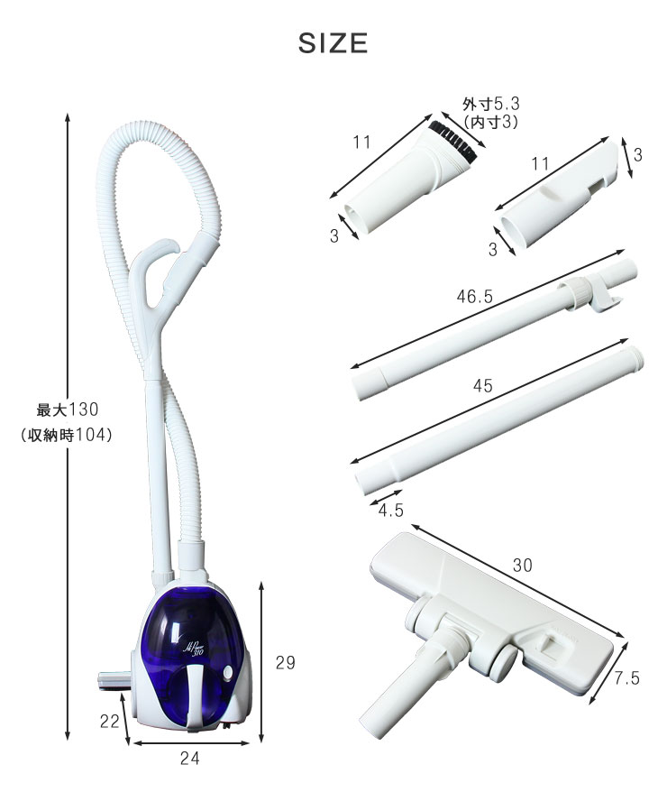 ▼ 2in1のこちらの掃除機もオススメです! ▼ 長寿命&軽量&強力吸引 コードレス 軽量1.5kg コード式 ▼カーペットやマットレスのお掃除に!▼ スイトル×掃除機 2点セット 仕様サイズ 高さ22×幅24×奥行29.5cm コード長さ:5m 【スタッフサカシナのおすすめポイント!】 ・簡単&清潔な紙パック式 ・手元スイッチでラクラクお掃除 ・ハイパワー・強・中・弱の4段階切替 ・使いやすい長さに調節できる収縮式パイプ ・フローリングor絨毯のお掃除に!2モードフロアブラシ ・狭い所もお掃除しやすい隙間用ノズル付き 重量 約3kg 付属品 すき間用ノズル、紙パック(2個) 詳細 ■定格電圧: AC100V 50/60Hz ■消費電力:約1000W〜280W■吸い込み仕事率:80W〜310WW ■ダストボックス容量:1.4L ■運転音:72dB〜50dB 生産国 中国 備考 【メーカー1年間保証】※配送は全て宅配便(1人)での玄関渡しとなります。